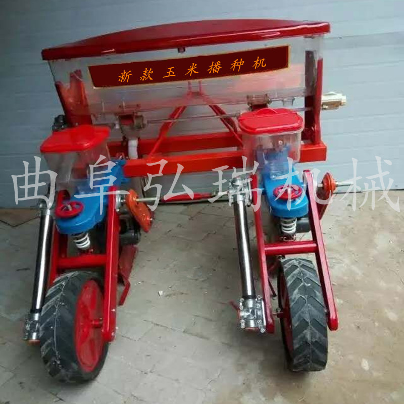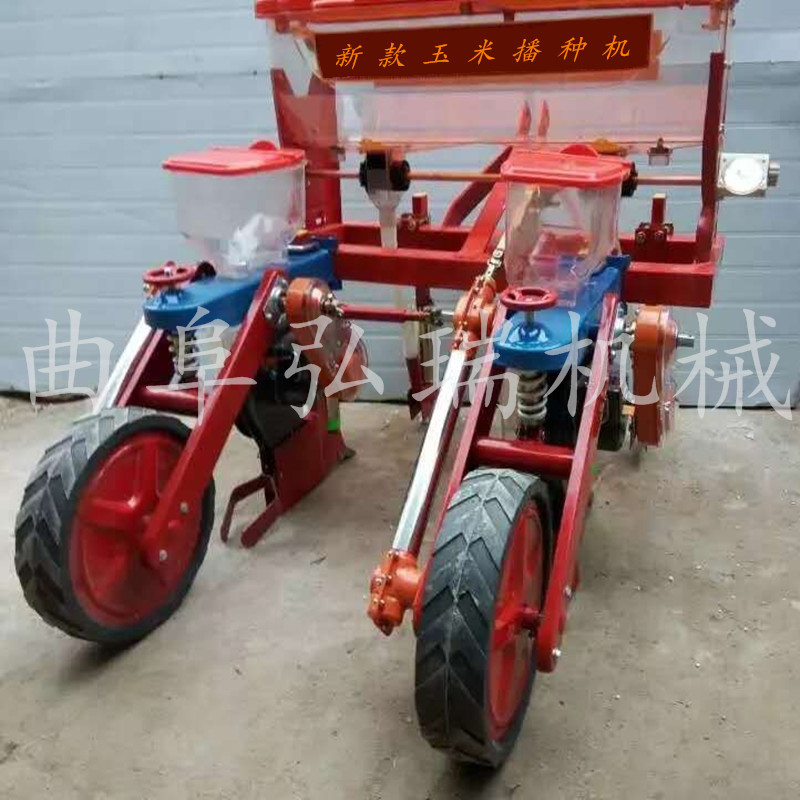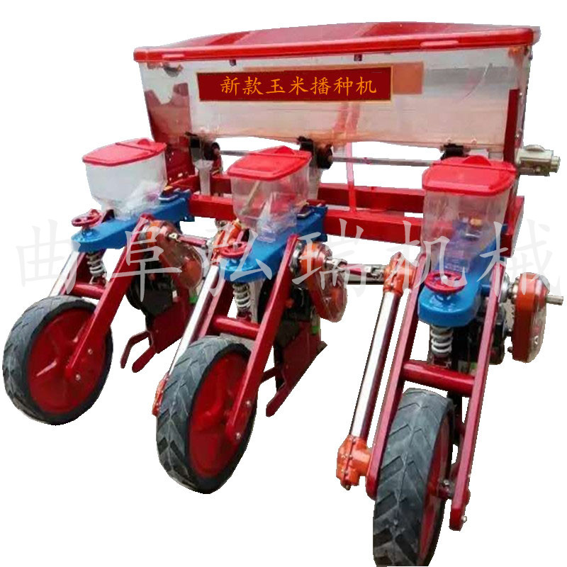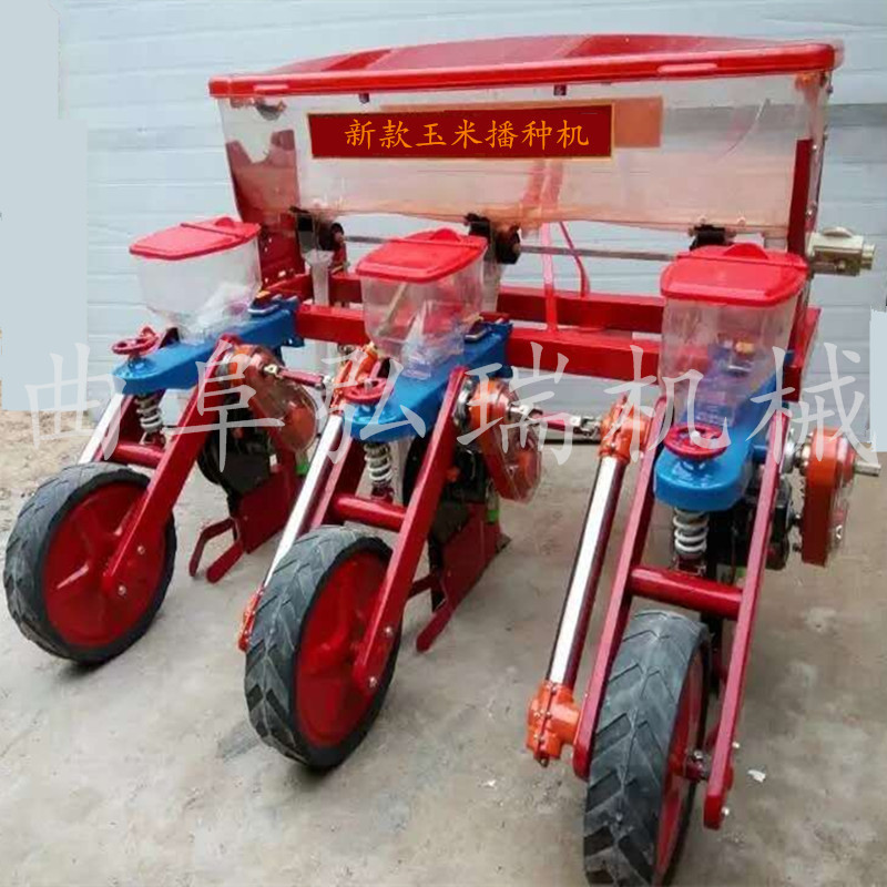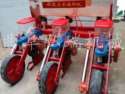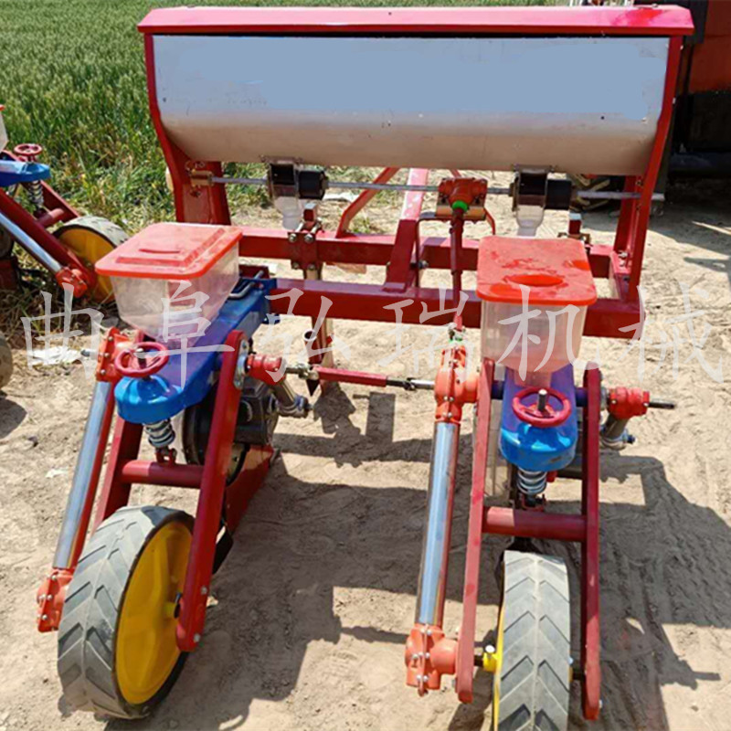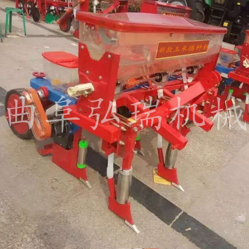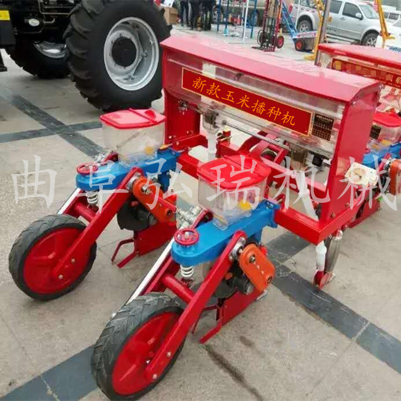 该机与拖拉机配套作业,主要用于免耕地单粒精播或双粒精播玉米,可条施晶粒状化肥,一次完成开沟施肥、开种沟、播种、覆土、镇压等项等工序。多加了2个浮动轮【特别适合山区,用,不是那么平的地】高凹不平。