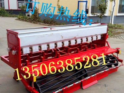 7行9行12行多功能播种机适用于平原和丘陵地区的条播小麦.玉米.大豆.谷子.牧草.白菜.油菜等小粒种子播种机12行多功能播种机与小四轮拖拉机配套使用,采用后置双轴三点悬挂,利用液压升降,排种装置由地轮驱动,使用方便。轻型双圆盘开沟器,能在桔杆还田的土壤中顺利开沟、播种在秸秆还田的地块中作业,还可将尖铲式开沟器换为圆盘开沟器。播种深浅可调,播量大小可调。杆式传动轴完全代替了链轮组构造,避免了掉链、折链的麻烦,更能及时准确地保证您的耕作顺利,使用寿命更长。12行多功能播种机一次作业可完成平地、开沟、播种、镇压、覆土、打竖等多项作业。圆盘开沟器采用弹簧浮动机构,可有效的避免因单盘受阻而整体漏播主机架采用加厚型方管,加强型设计,整体结构更加坚固、耐用。