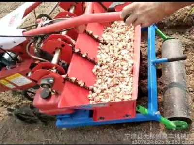 大蒜播种机采用点播和锥形螺旋导种管技术,锥穴孔洞大小可以保证蒜瓣入土鳞芽朝上不致于倾斜,锥形螺旋导种管的结构尺寸大小决定了蒜瓣入土的鳞芽朝上率。蒜瓣的结构尺寸及重心大概在大头根部即总长三分之一的地方,蒜瓣在锥形螺旋导种管内的下落速度和自旋速度越快蒜瓣入土的鳞芽朝上率就越高。 自供大蒜播种机,大蒜收获机厂家经营大蒜播种机型号齐全,一行两行三行四行五行、六行、九行十行等型号定制