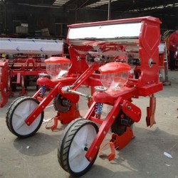 该机与拖拉机配套作业,主要用于免耕地单粒精播或双粒精播玉米,可条施晶粒状化肥,一次完成开沟施肥、开种沟、播种、覆土、镇压等项等工序,两行机添加铺镆机构可以完成地膜覆盖。