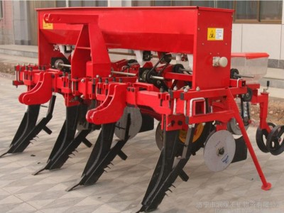 精量玉米播种机与拖拉机配套作业,主要用于免耕地单粒精播或双粒精播玉米,可条施晶粒状化肥,一次完成开沟施肥、开种沟、播种、覆土、等项等工序,两行机添加铺镆机构可以完成地膜覆盖。