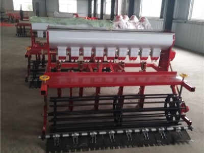 7行9行12行多功能播种机适用于平原和丘陵地区的条播小麦.玉米.大豆.谷子.牧草.白菜.油菜等小粒种子播种机12行多功能播种机与小四轮拖拉机配套使用,采用后置双轴三点悬挂,利用液压升降,排种装置由地轮驱动,使用方便。轻型双圆盘开沟器,能在桔杆还田的土壤中顺利开沟、播种在秸秆还田的地块中作业,还可将尖铲式开沟器换为圆盘开沟器。播种深浅可调,播量大小可调。杆式传动轴完全代替了链轮组构造,避免了掉链、折链的麻烦,更能及时准确地保证您的耕作顺利,使用寿命更长。12行多功能播种机一次作业可完成平地、开沟、播种、镇压、覆土、打竖等多项作业。圆盘开沟器采用弹簧浮动机构,可有效的避免因单盘受阻而整体漏播主机架采用加厚型方管,加强型设计,整体结构更加坚固、耐用。