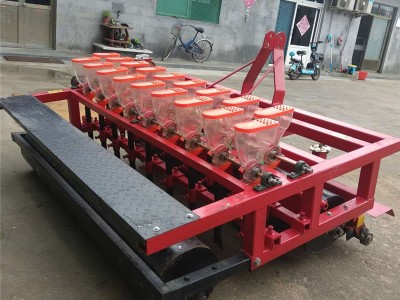 拖拉机带动的小麦播种机要求在原型谷子精播机上,加装施肥机,并可中耕的结构形式。其总体平面配置是,前7行深施颗粒化肥,施肥形式为条施,位置在预设谷子精播的垄背间。后8行精播谷子,位置在条施化肥的垄背间。这样,肥料的腐蚀性不会伤害种子,到谷子成苗期又能充分吸收肥料。其谷子精播部分布置是,拖拉机后轮胎中间安装4行播种单元,轮胎压痕空出,为中耕时拖拉机再次跟着后轮压痕进入苗田。后轮胎左右两外侧,各安装2行播种单元,这样,拖拉机作业往复时,就形成4行一垅,中间隔开状况。这样,还给谷子机械化收割打下基础。克服谷穗垂弯绞缠,难分行而造成的边际损失。因为小手扶型收割机是4行,四轮拖拉机型是8行,所以正好。更多>本企业其它产品