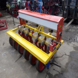本产品主要是膜上播种玉米、谷子、黍子、花生、谷物类。适合于干旱半干旱地区使用。能够一次性完成前置刮土、整平、开沟、深施颗粒肥、铺膜、压膜、穴播、覆土等工序。本机采用先铺膜后播种工艺,无需人工破膜,避免了先播种后铺膜造成的繁重体力劳动。