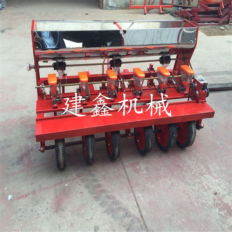 5.各行传动轴连成一体,统一驱动,转速一至,传动动力大,即使其中一行的地轮偶然打滑,也不影响该行正常播种。