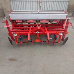 本产品主要是膜上播种玉米、谷子、黍子、花生、谷物类。适合于干旱半干旱地区使用。能够一次性完成前置刮土、整平、开沟、深施颗粒肥、铺膜、压膜、穴播、覆土等工序。本机采用先铺膜后播种工艺,无需人工破膜,避免了先播种后铺膜造成的繁重体力劳动。