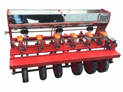 我厂浩运机械生产的谷子精播机工作原理是:在通过本机排种控制系统对下种数量的精密控制,播种时按量定距,将种子相对有规律的单粒排放在出苗环境较好的土层。使出苗株距自然合理,减省了人工蹲下间苗的劳苦环节 播种效率是人工播种的