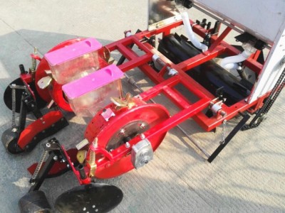 本产品主要是膜上播种玉米、谷子、黍子、谷物类。适合于干旱半干旱地区使用。能够一次性完成前置刮土、整平、开沟、深施颗粒肥、铺膜、压膜、穴播、覆土等工序。本机采用先铺膜后播种工艺,无需人工破膜,避免了先播种后铺膜造成的繁重体力劳动。