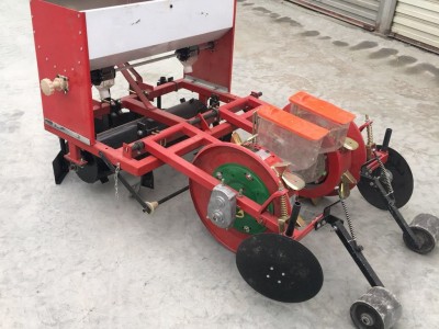 本产品主要是膜上播种玉米、谷子、黍子、花生、谷物类。适合于干旱半干旱地区使用。能够一次性完成前置刮土、整平、开沟、深施颗粒肥、铺膜、压膜、穴播、覆土等工序。本机采用先铺膜后播种工艺,无需人工破膜,避免了先播种后铺膜造成的繁重体力劳动。