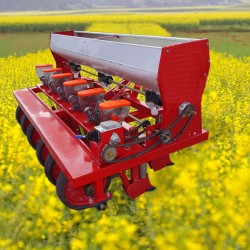 本产品主要是膜上播种玉米、谷子、黍子、花生、谷物类。适合于干旱半干旱地区使用。能够一次性完成前置刮土、整平、开沟、深施颗粒肥、铺膜、压膜、穴播、覆土等工序。本机采用先铺膜后播种工艺,无需人工破膜,避免了先播种后铺膜造成的繁重体力劳动。