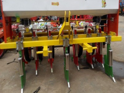 本产品主要是膜上播种玉米、谷子、黍子、花生、谷物类。适合于干旱半干旱地区使用。能够一次性完成前置刮土、整平、开沟、深施颗粒肥、铺膜、压膜、穴播、覆土等工序。本机采用先铺膜后播种工艺,无需人工破膜,避免了先播种后铺膜造成的繁重体力劳动。 产品图片