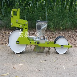 配件介绍种子箱(透明可随时确认种子数量】,种子箱盖可以测量种子大"单触式"种子箱拆卸,播种轮(根据种子大小与所需的株距可以选择合适的播种轮) 根据购买的行数我们只配相应行数的播种轮;例1行播种机1个播种轮3行播种机3个播种轮,以此类推,播种轮有圆孔型播种轮、十字花孔型播种轮、半圆孔型播种轮、长型孔播种轮等。选择播种轮的方法:可根据所需的种子大小、株距大小来选择合适的播种轮。