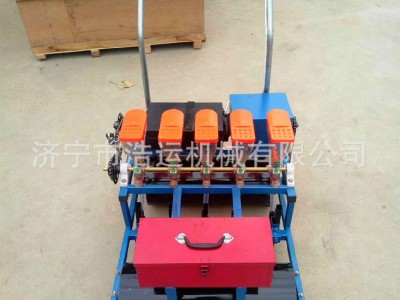 我厂浩运机械生产的蔬菜精播机**度可以一穴一粒和多粒(根据客户需要),株距、播种深度都可以灵活调节。突出特点:操作简便、开沟、播种、覆土、镇压一次完成。取代传动人工撒播,实现精细化作业,效率更高,因为本产品是蔬菜点播机,所以会更加省种子,大大减少后期间苗的人工成本。