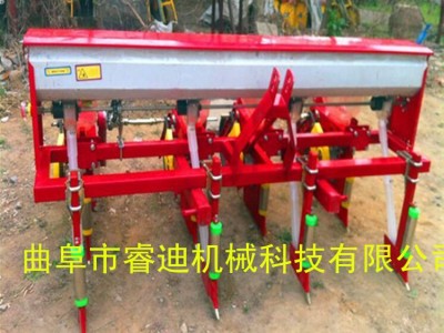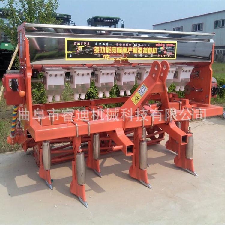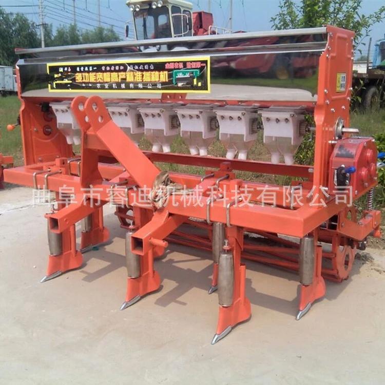 该机与拖拉机配套作业,主要用于免耕地单粒精播或双粒精播玉米,可条施晶粒状化肥,一次完成开沟施肥、开种沟、播种、覆土、镇压等项等工序,两行机添加铺镆机构可以完成地膜覆盖。