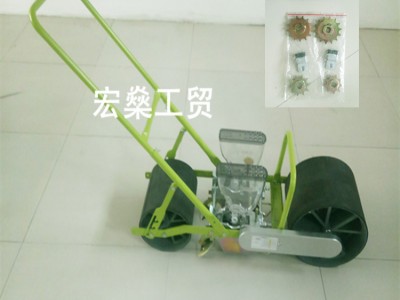 配件介绍种子箱(透明可随时确认种子数量】,种子箱盖可以测量种子大"单触式"种子箱拆卸,播种轮(根据种子大小与所需的株距可以选择合适的播种轮) 根据购买的行数我们只配相应行数的播种轮;例1行播种机1个播种轮3行播种机3个播种轮,以此类推,播种轮有圆孔型播种轮、十字花孔型播种轮、半圆孔型播种轮、长型孔播种轮等。选择播种轮的方法:可根据所需的种子大小、株距大小来选择合适的播种轮。