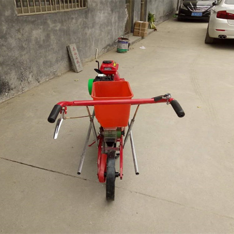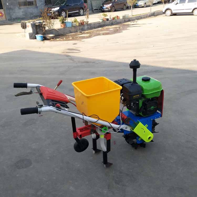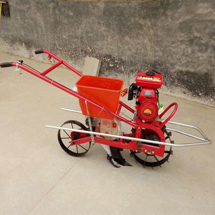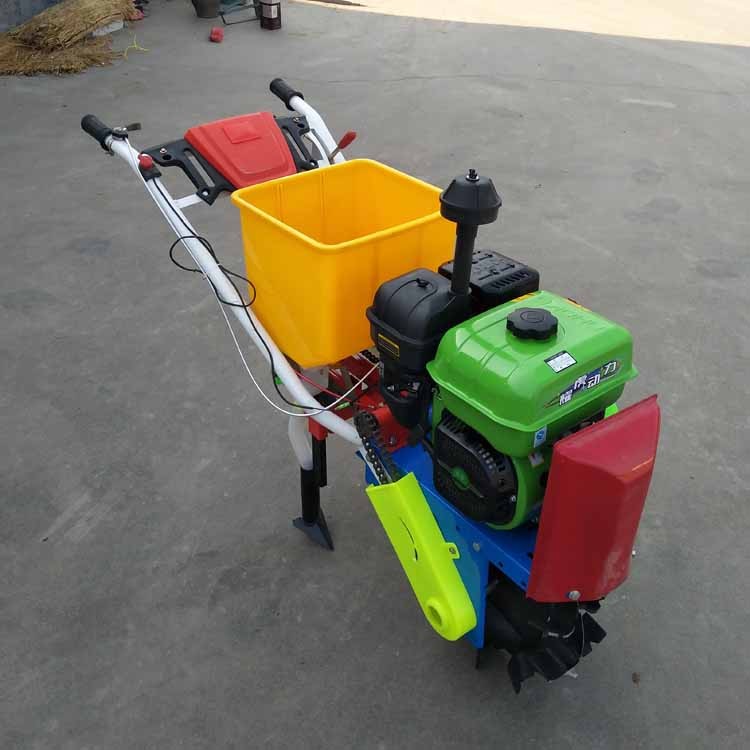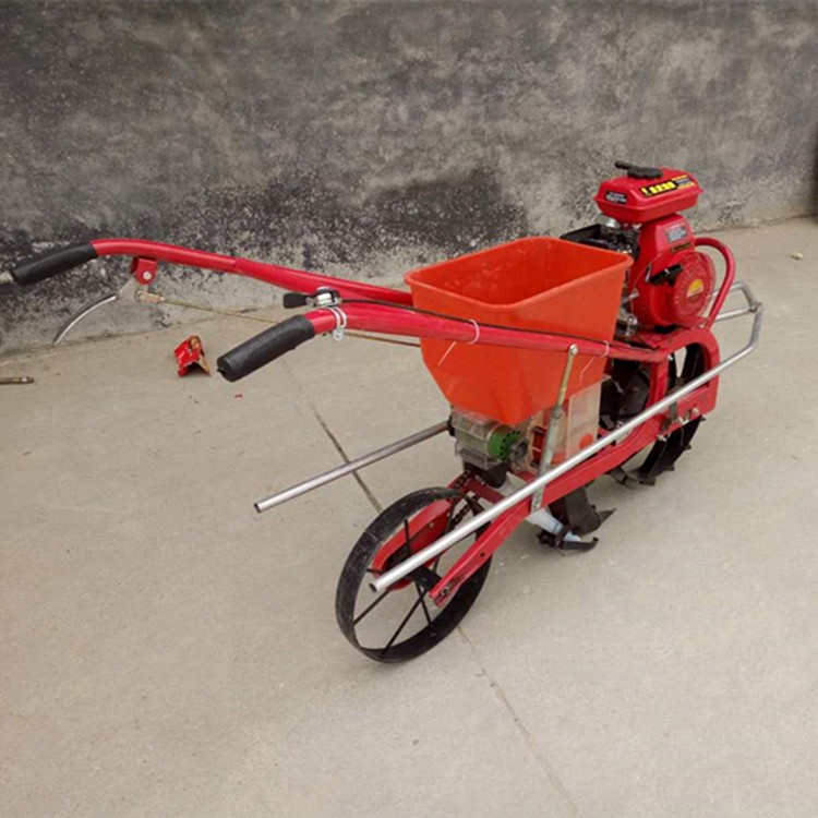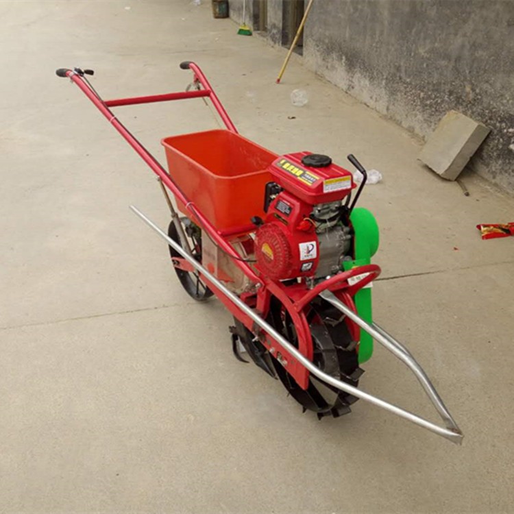 多功能汽油施肥播种器:可以点播芝ma、红豆、白菜籽、玉米、蚕豆等颗粒状种子。可以同时施肥、播种,下种量、下肥量、播种深度可以调节是旱田使用的小型机械。适用于所有旱田农作物垄间作业。是广大农民朋友实现农业机械化的**产品。 ?选配正规企业生产的变速箱,优质汽油机为配套动力。易启动,轻便耐用。整体板设计,一次成型,坚固耐用。加粗手把。人性化的优质手油门设计。新款增添了高低空档挂挡离合功能独特的主轮设计不溜沟,扬尘少,减少向变速箱漏土及缠草。