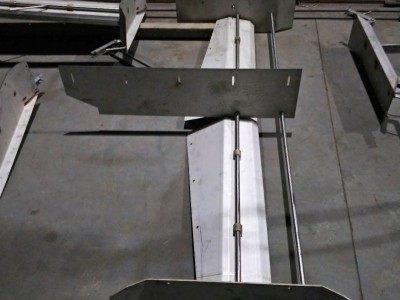 (6)转角轮采用球墨铸铁材质焊接,外表做的达克罗处理,保证了不锈钢牵引绳和整体清粪系统运行的稳定性和安全性。